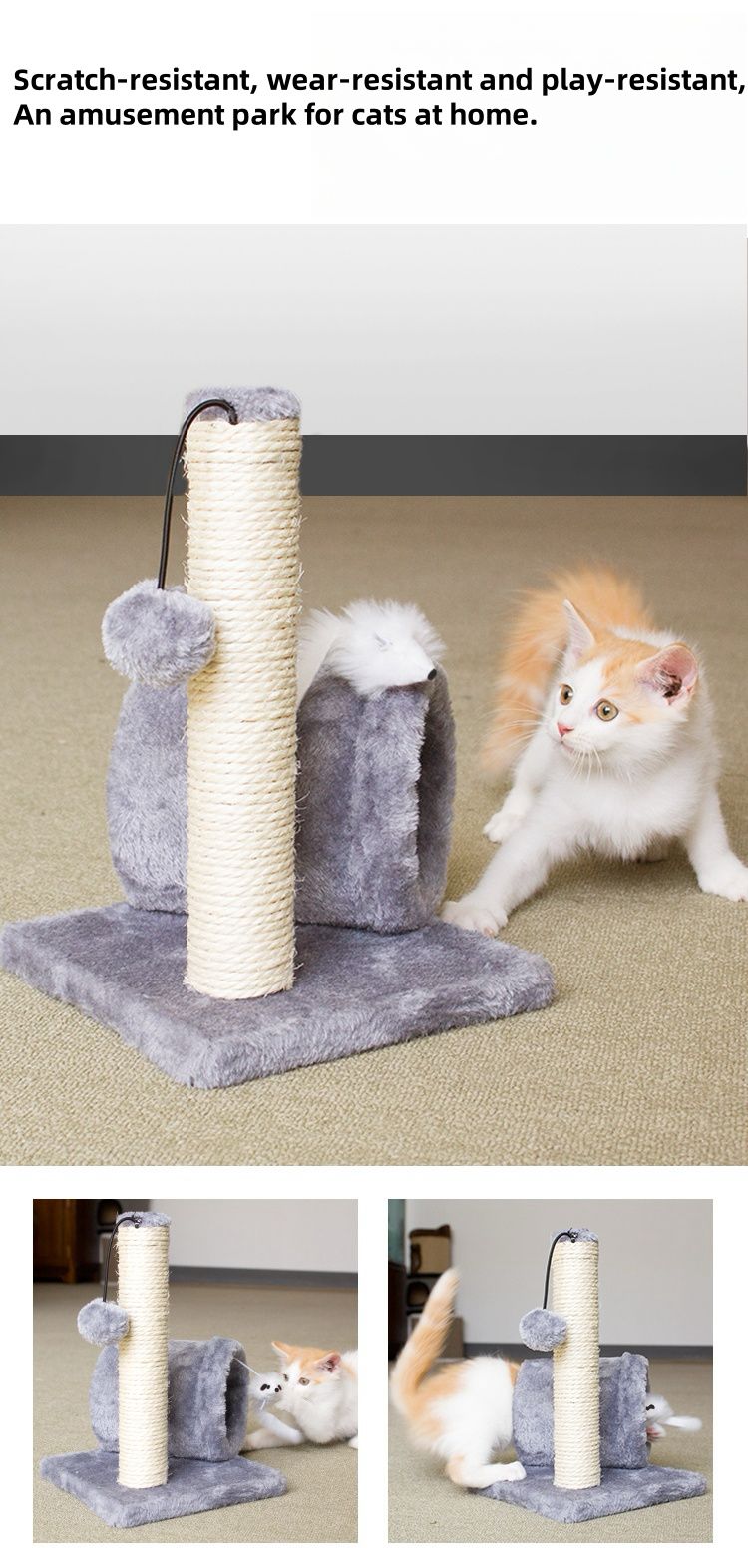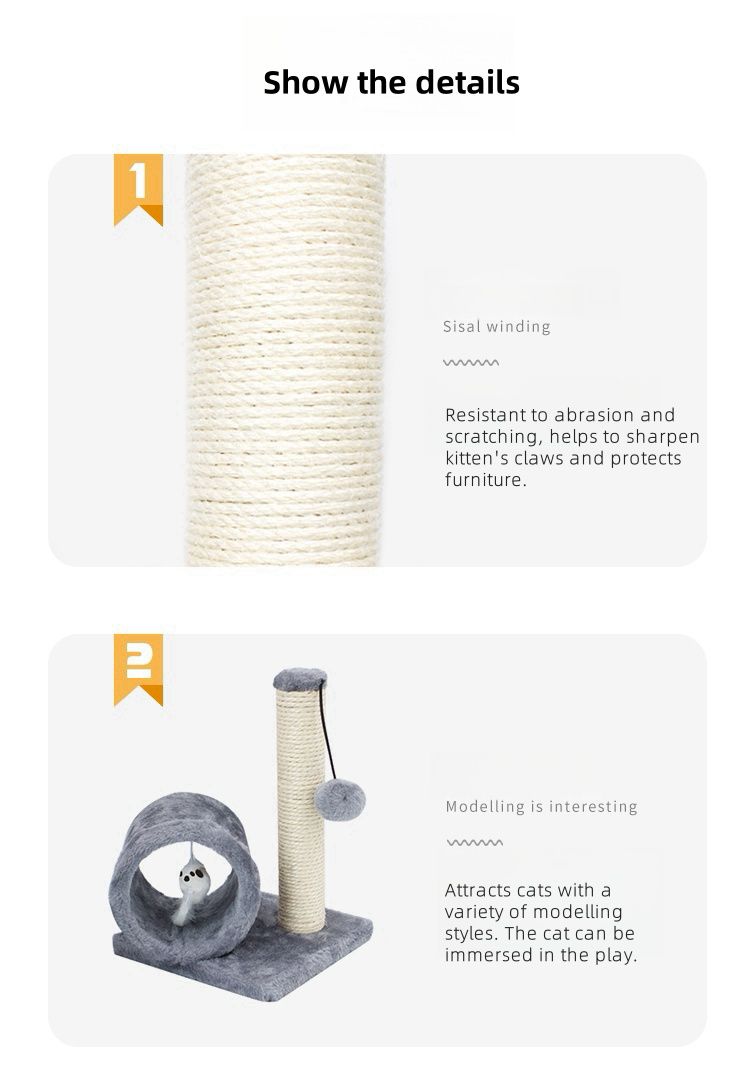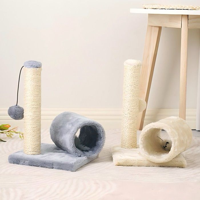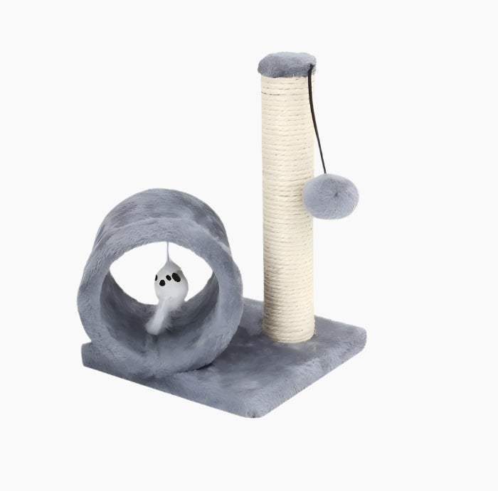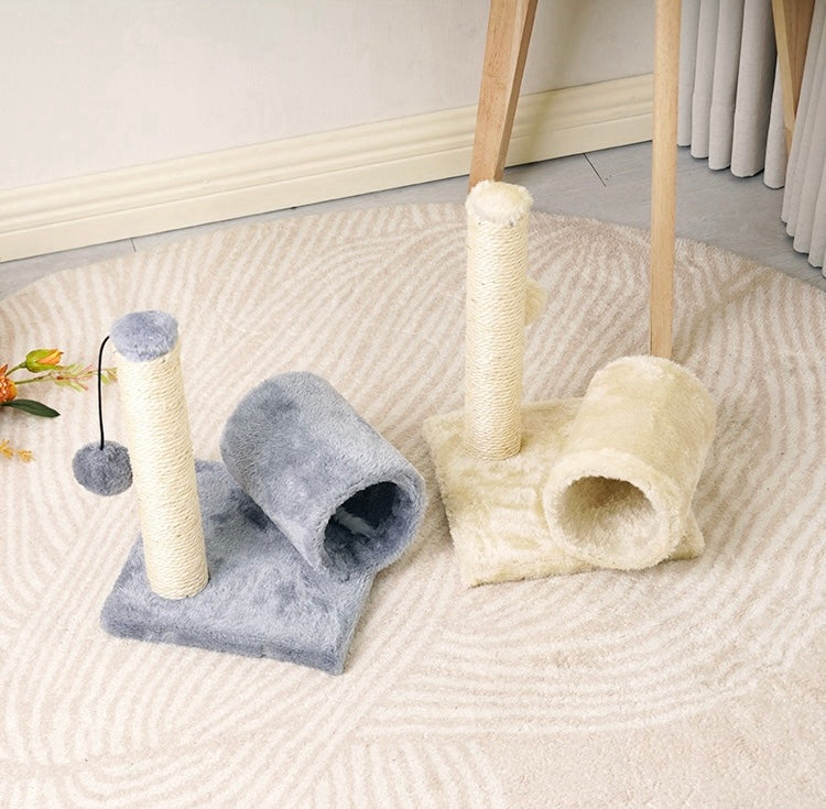 This compact kitten tree includes a soft tunnel, mini perch and playing hanging toy - designed to support early development, encourage safe scratching and create hours of fun in small spaces.